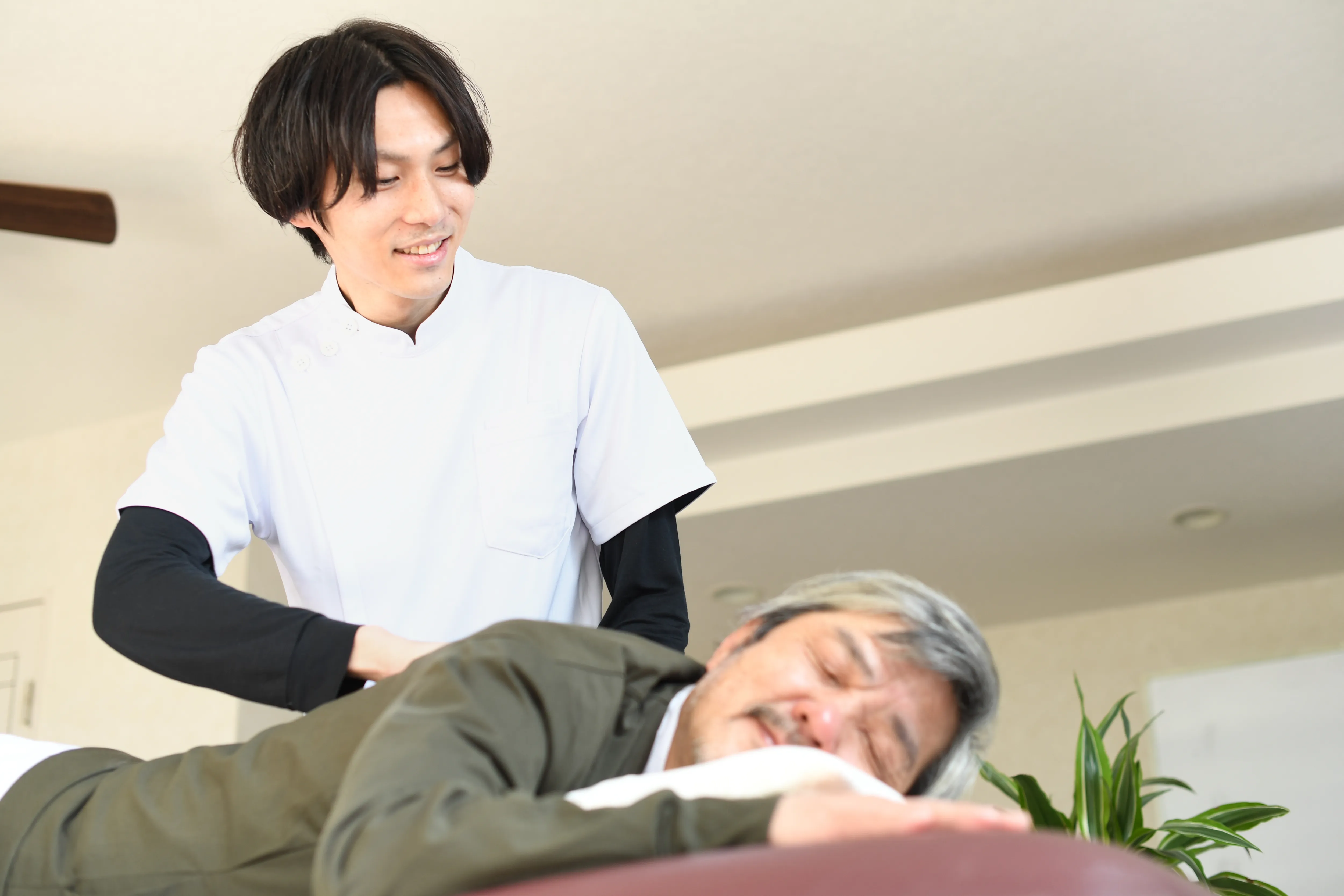 患部や全身の状態を把握し、痛みの原因を特定して施術を行います。 -